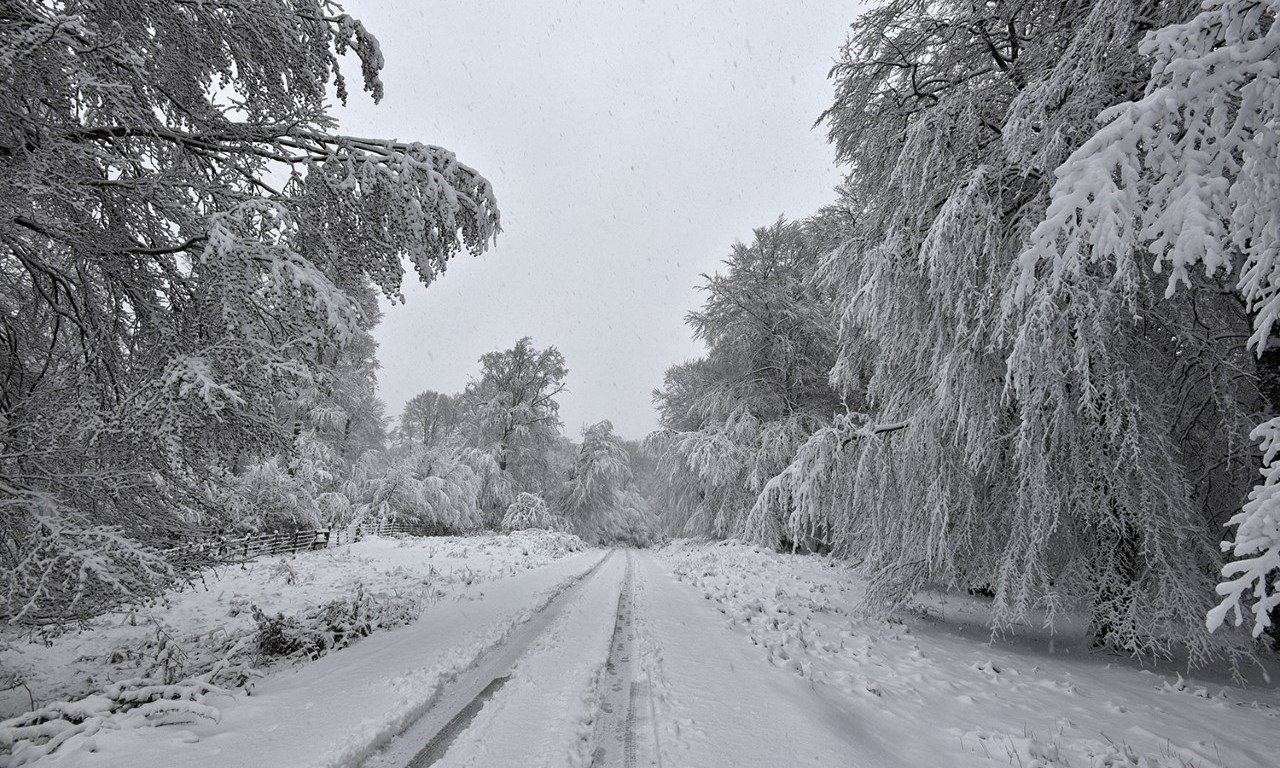 El propio Otoño se ha visto sorprendido por el brusco cambio de temperaturas y las hojas de las hayas, aún ocres y rojizas se han teñido de blanco.