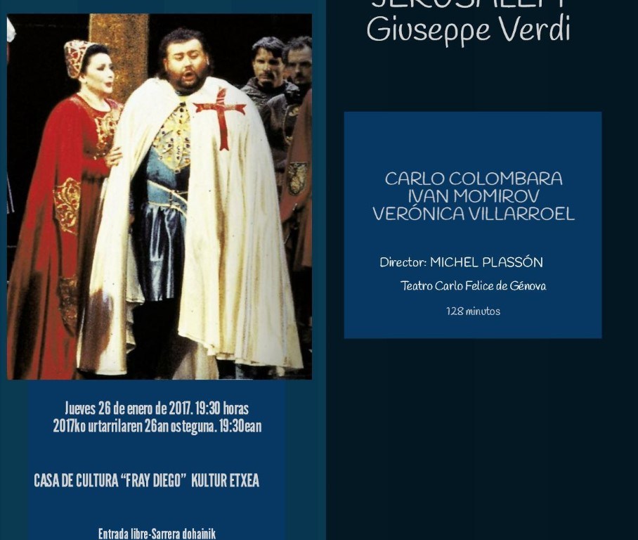 Este jueves día 26 de enero a las 19:30 horas tenemos una fantástica oportunidad de acercarnos a la Ópera, acudiendo a la Casa de Cultura para disfrutar de «Jerusalem» una creación del inmortal Giuseppe Verdi.