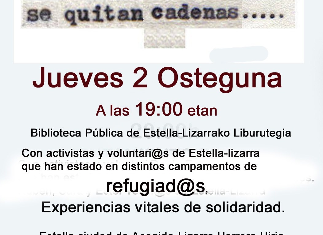 La Plataforma ciudadana «Estella ciudad de acogida-Lizarra Harrera Hiria» ha organizado una mesa redonda bajo el título: Se buscan lazos, se quitan cadenas.. para este jueves 2 de febrero a las 19 horas en la Biblioteca Pública de Estella.