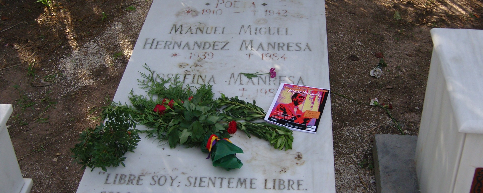 De esta manera los restos del Miguel Hernández descansan bajo una hermosa lápida de mármol blanco, siempre llena de flores y de cartas de los admiradores de su obra.