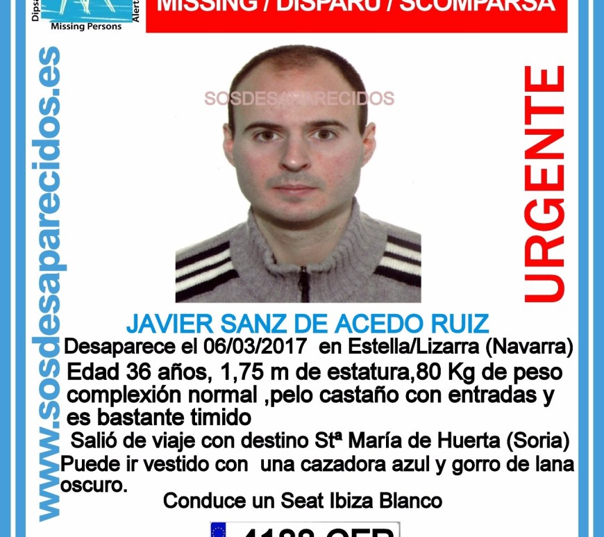 Desaparecido un joven de Estella de 36 años. Se trata de Javier Sanz de Acedo Ruiz.