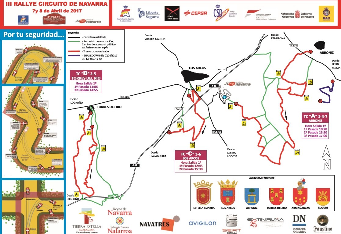Desde hoy jueves, ya son públicos los tramos por los cuales se va a disputar la competición. Hay un total de tres tramos cronometrados, el primero está situado en Arróniz y posiblemente será el decisivo en el rally, con 21 km de distancia; el segundo se sitúa en Torres del Río, serán 13 km; y tercero el tramo de Los Arcos, con 9 Km. Los participantes harán tres pasadas por cada tramo, excepto los regionales, que la última pasada por el tramo de Arróniz no la harán.