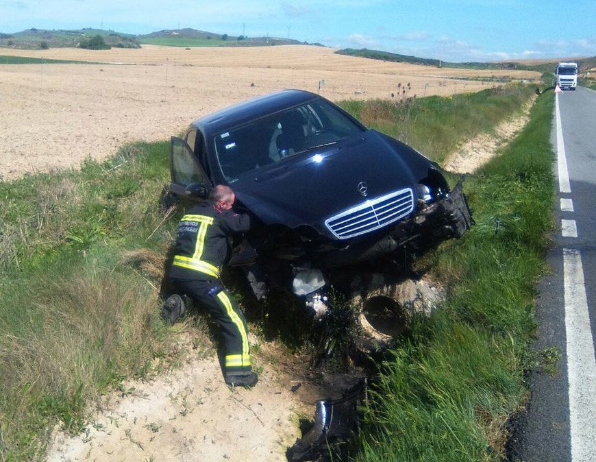 Una persona ha resultado herida esta mañana al salirse de la carretera el coche que conducía en Mendigorría. El vehículo, un Mercedes de color negro, ha chocado contra un paso de acequia, y ha volcado lateralmente sufriendo importantes daños materiales. Según ha informado Policía Foral, el accidente se ha producido en torno a las 11:10 horas en el punto kilométrico 3 de la NA-6030. Hasta el lugar … Continúa leyendo Herido en accidente de tráfico en Mendigorría.