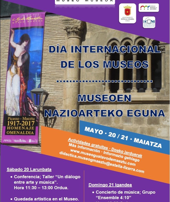El Museo Gustavo de Maeztu de Estella-Lizarra celebra una nueva edición del Día Internacional de los Museos con una extensa programación, para todos los públicos, durante las próximas semanas. En primer lugar la celebración del Día Internacional de los Museos coincidirá con la nueva exposición temporal titulada “Mujeres: Maestras de la pintura y la escultura”, que se inaugurara el viernes 12 de Mayo. A su … Continúa leyendo Actividades en el Gustavo de Maeztu- Día Internacional de los Museos.