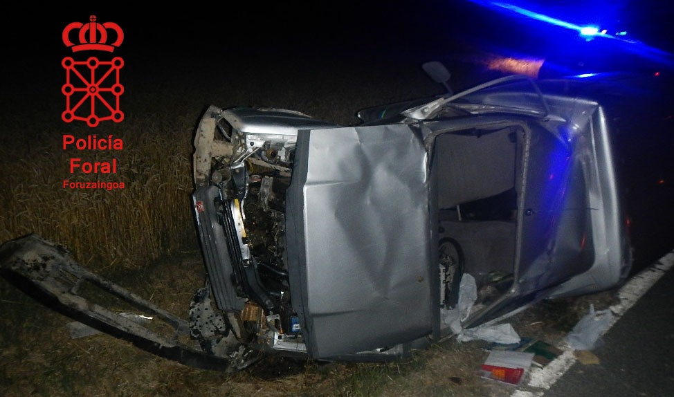 Ayer por la noche en el km 9.5 de la NA7320, termino municipal de Arizala, tuvo lugar un accidente de trafico al salirse de la vía un turismo que posteriormente volcó. El conductor de vehículo dio positivo en la prueba de alcoholemia triplicando la tasa por lo que fue imputado.