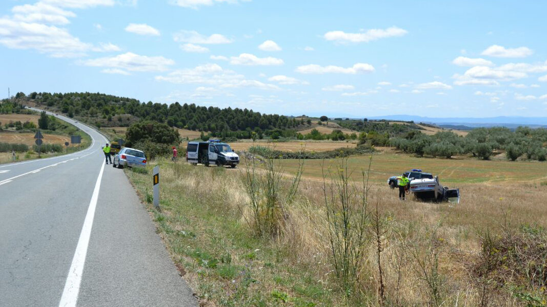 El accidente ocurrió a las 12.20 horas en la carretera NA-132, a la altura del kilómetro 6. Un vehículo ocupado por cuatro personas se salía de la carretera por causas que investiga la Guardia Civil y volcaba en una parcela situada junto a la vía.