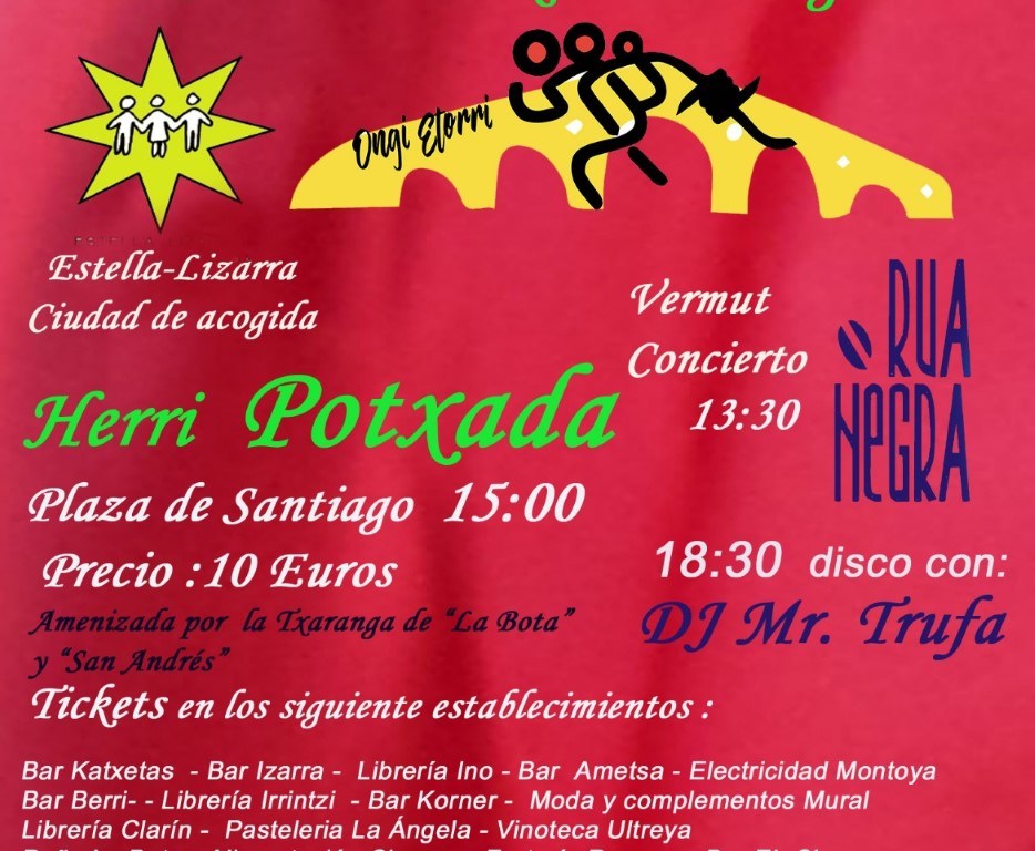 Llevamos dos años encargándonos de organizar junto a peñas, sociedades, colectivos de inmigrantes y vecinos y vecinas de Estella-Lizarra y con el apoyo del Ayuntamiento de Estella-Lizarra el día de la solidaridad en Fiestas. Un día de música y alegría en la diversidad que se celebra el miércoles 9 de agosto en al Plaza Santiago y que tiene como acto central una comida popular que queremos pase de los 500 comensales ( la experiencia del año pasado nos invita a ser optimista pues fuimos 550 las personas que ese día participamos).