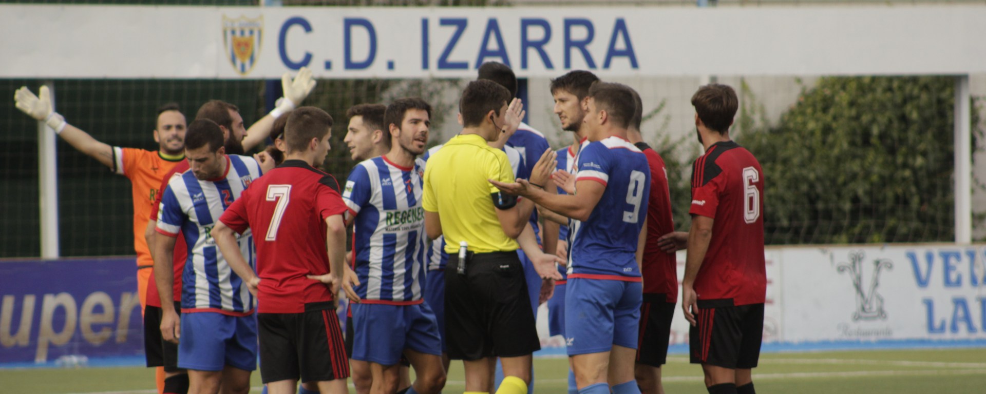 Comenzó el primer tiempo con dominio del Izarra, aunque ninguno de los dos equipos consiguió generar prácticamente hasta el ecuador de la primera parte, en la que cada equipo materializó prácticamente cada ocasión que tuvo.