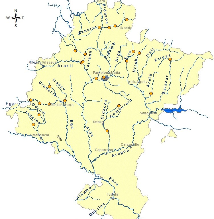 La red del Gobierno de Navarra, consta de 24 estaciones de aforo. De ellas, 4 se sitúan en ríos de la vertiente cantábrica y las otras 20 se localizan en la cuenca de Ebro. Esta red se complementa con las estaciones de aforo de la Confederación Hidrográfica del Ebro y la de la Confederación Hidrográfica del Norte en Navarra. Los datos se registran cada 10 minutos.