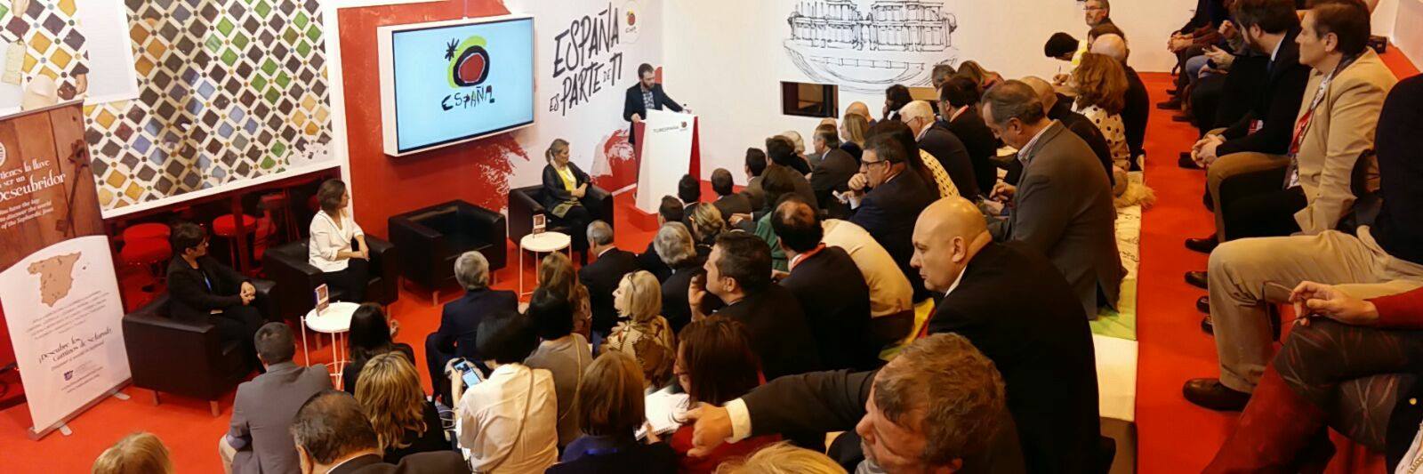 Tras un breve descanso y ya por la tarde, el Alcalde intervino con enorme repercusión en el stand de Turespaña. El acto de nuestro Alcalde y presidente de la Red de Juderías de España – Caminos de Sefarad llenó el lugar y mucha gente tuvo que seguirlo de pie.