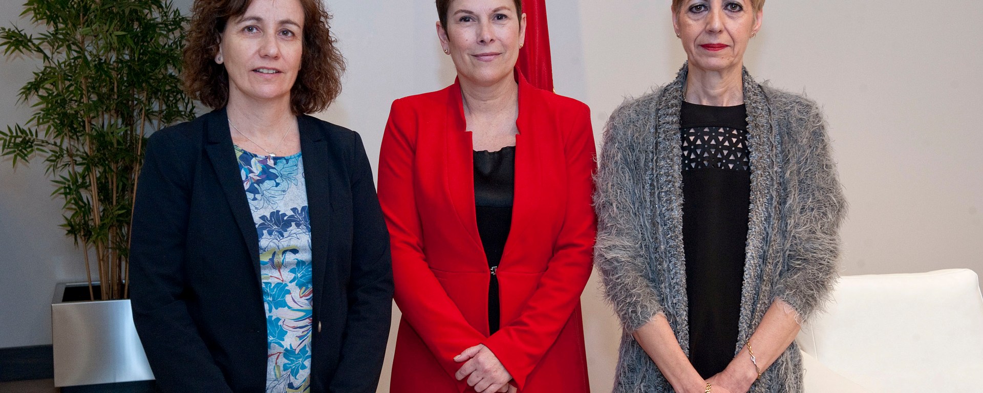 La Presidenta Barkos, con la consejera Herrera (a la izquierda de la imagen) y la alcaldesa de Viana, Yolanda González.