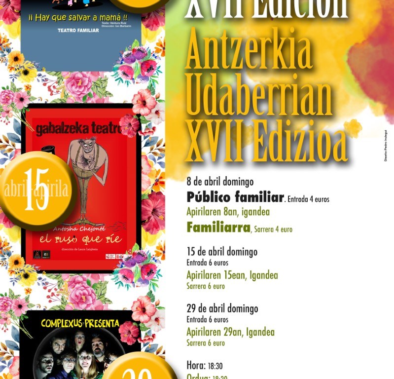 Organizado por el Grupo de Teatro Kilkarrak, en colaboración con el Ayuntamiento de Estella-Lizarra y la Federación Navarra de Teatro Amateur llegan las XVII Jornadas de Teatro en Primavera. El programa presenta en escena tres representaciones que tendrán lugar en el Centro Cultural Los Llanos. En esta edición la gran novedad es que las actuaciones tendrán lugar las tardes de los domingos a las 18:30 horas.