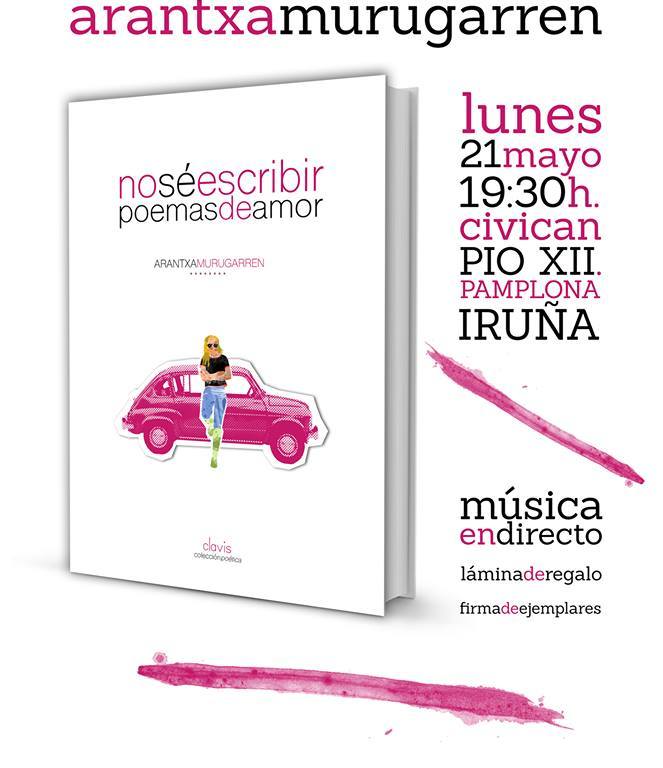 Arantxa Murugarren (Pamplona 1970), presentará junto a la editorial R de Rarezas su primer poemario el próximo lunes 21 de mayo en Civican (Avenida Pio XII, 2) a las 19:30 horas. El libro está ilustrado por Daniel Albors y reúne treinta y siete poemas en los que la intensidad de lo vivido es el denominador común en cada verso.