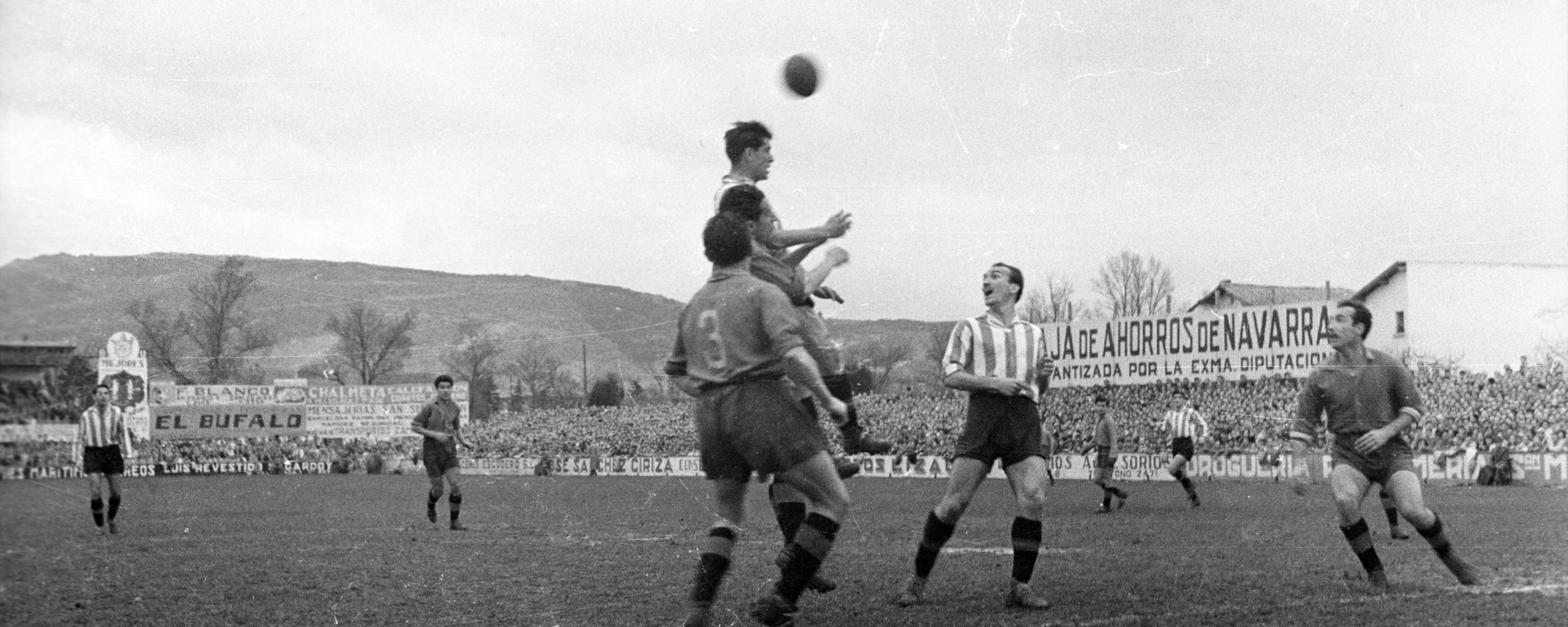 Tras el paréntesis que supuso la Guerra Civil, el fútbol se convirtió paulatinamente en un espectáculo de masas. Los modestos primeros campos de deportes dieron paso a estadios de mayor aforo, al mismo tiempo que las competiciones oficiales se normalizaron y ganaron eco social y los clubes se consolidaron como entidades de relevancia. De esta popularización dan cuenta las numerosas fotografías que integran el fondo fotográfico de José Galle y que retratan múltiples partidos y actos celebrados por algunos de los principales equipos navarros de fútbol como el Club Deportivo Atlético Osasuna, el Club Deportivo Tudelano, la Peña Sport Fútbol Club o el Club Deportivo Izarra. Una selección de las cuales puede ser contemplada también en la micromuestra.