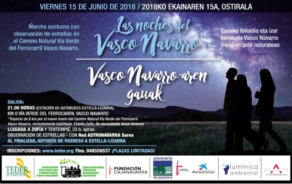 - Acciones de sensibilización y divulgación «Noches del Vasco Navarro». Marcha nocturna por la Vía Verde con visualización de estrellas. Se ha organizado una el 15 de junio, y se plantea realizar otra a final de verano.