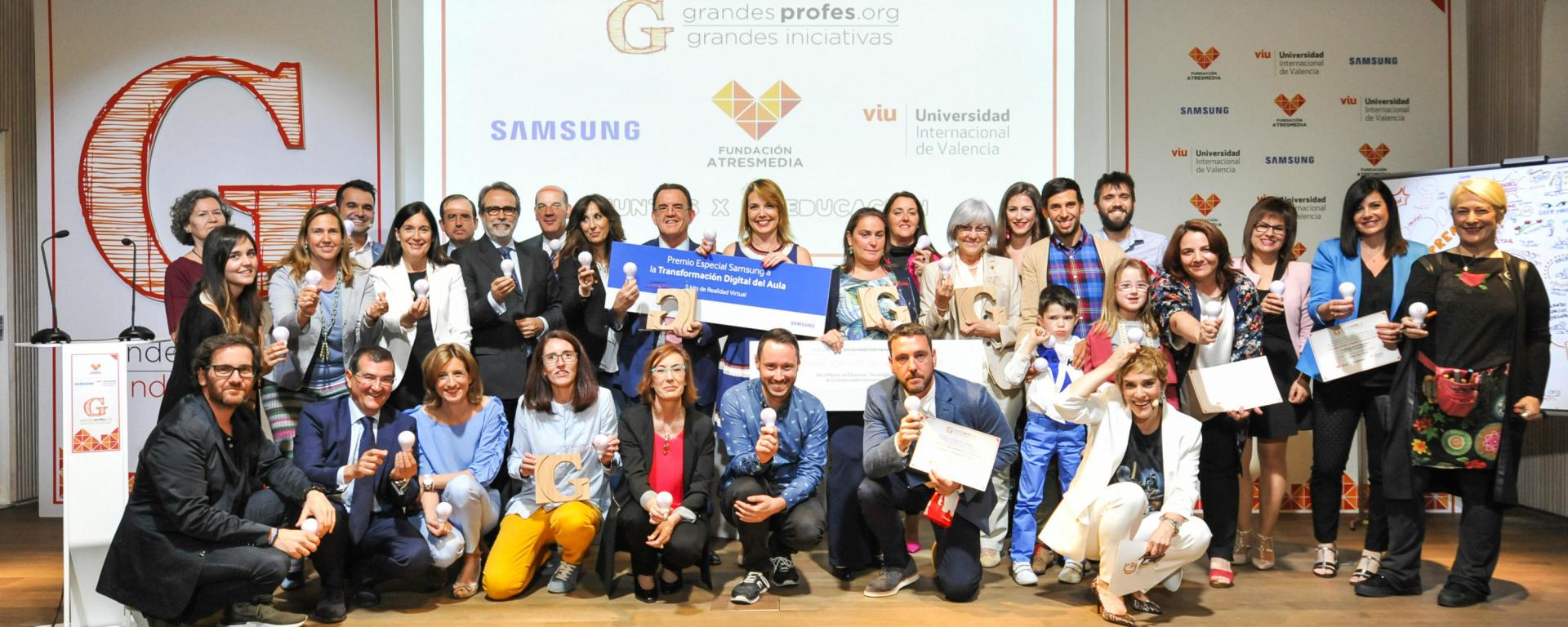 La Fundación ATRESMEDIA, SAMSUNG y la Universidad Internacional de Valencia (VIU) han entregado los Premios ‘Grandes Profes, Grandes Iniciativas’, convocatoria que reconoce los mejores proyectos impulsados por profesores y centros educativos llevados a cabo durante el curso escolar 2017-2018.