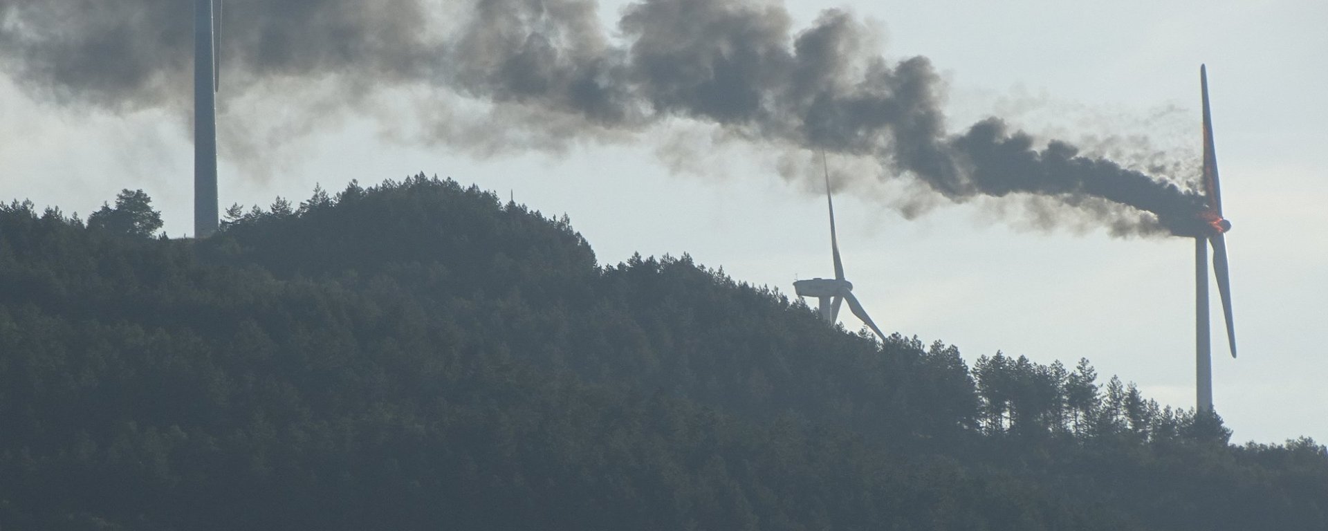 El incendio de un aerogenerador en el parque eólico de Aguilar de Codés provocó, ayer domingo, un pequeño incendio forestal en el que intervinieron diferentes dotaciones de los bomberos.
