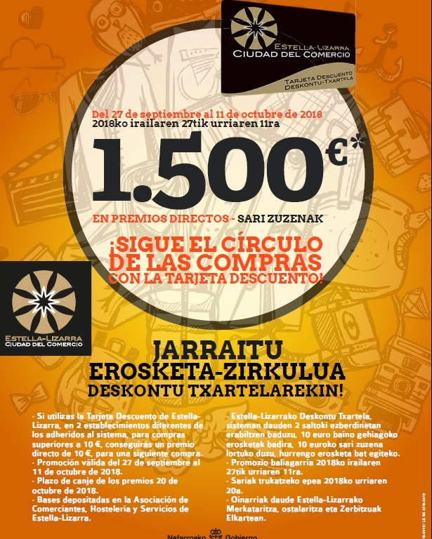 Esta actividad cuenta con el patrocinio del Departamento de Comercio del Gobierno de Navarra, dentro del Plan de Actuación Comercial para la ciudad de Estella-Lizarra,