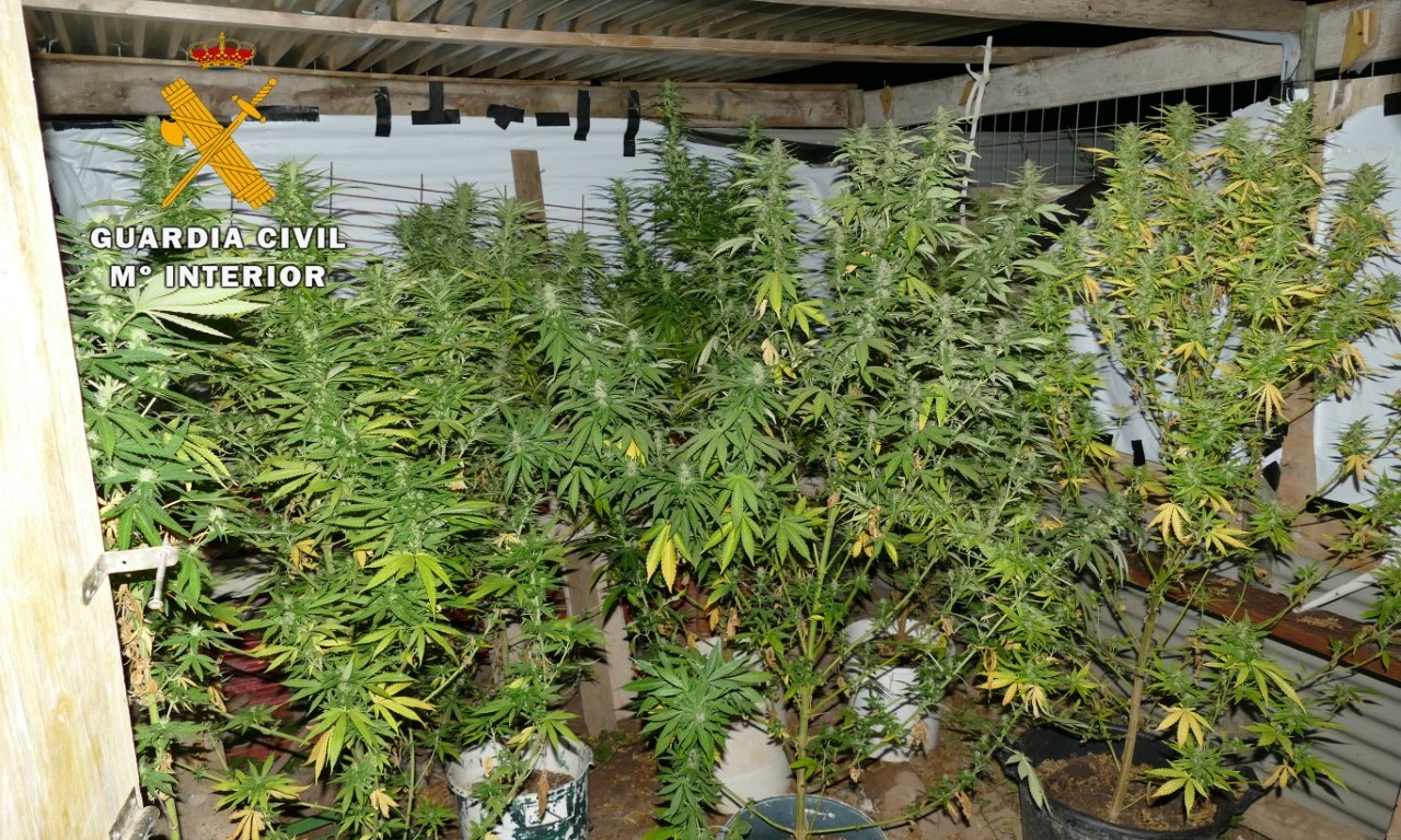 Se ha incautado medio kilo de cogollos de marihuana listos para la venta, 21 plantas de gran tamaño, dinero en efectivo, una escopeta de caza con 38 cartuchos, diversas sustancias estupefacientes y útiles y materiales utilizados para el cultivo de marihuana, así como diversas cantidades de speed.