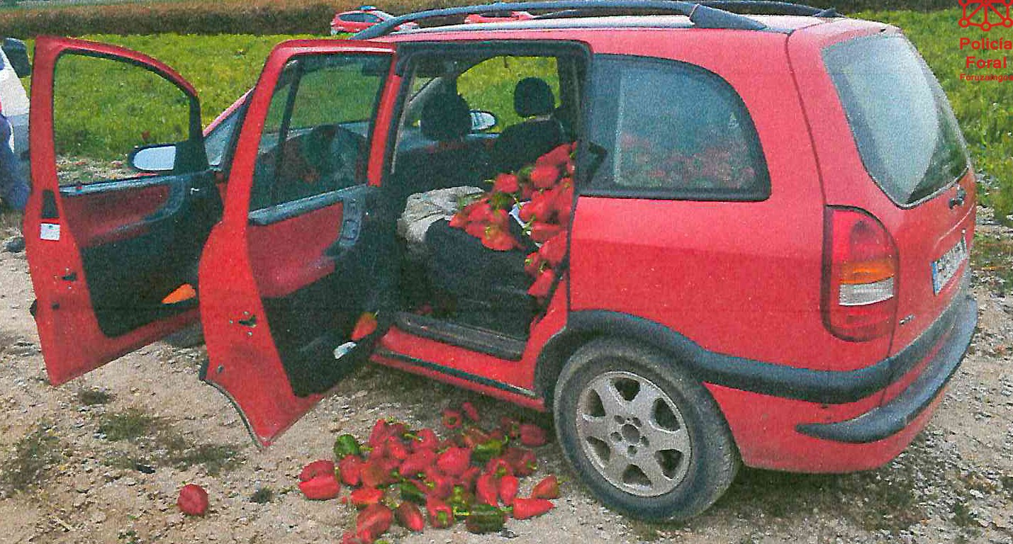 El propietario de la finca, alertó a Policía Foral de la presencia de unas mujeres desconocidas junto a un turismo cargado de pimientos en el interior de su finca en Viana. Una vez en el lugar los agentes identificaron a las presuntas autoras de 33 años. En el interior del vehículo se contabilizaron unos 400 kilos de pimientos con un valor en el mercado junto a los daños en la finca de unos 380 euros por persona. Los agentes procedieron a la devolución de los pimientos a su propietario.