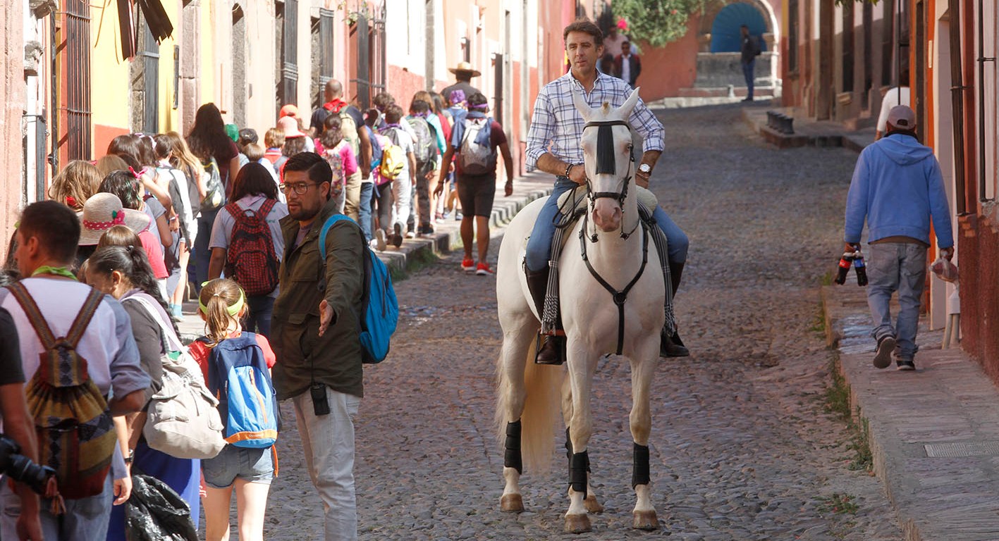 También él disfrutó del calor y color de una de las ciudades coloniales más bonitas de toda la República y del calor y generosidad de sus vecinos, todo ello en un horario que para el jinete no suele ser habitual pasear por San Miguel.