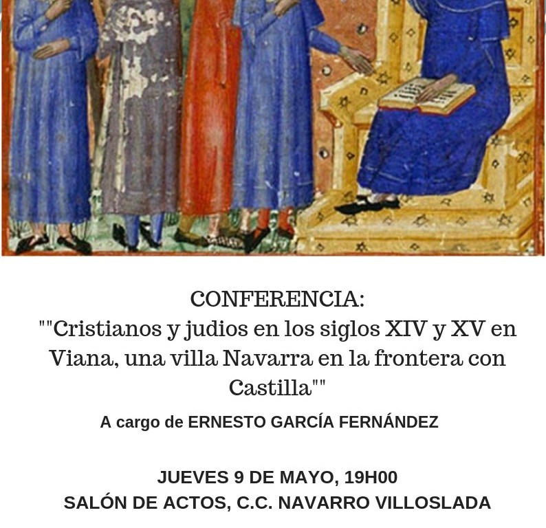 Este jueves 9 de mayo tendrá lugar la quinta conferencia del VIII Centenario de Viana, impartida por D. Ernesto García Fernández con el título “Cristianos y judíos en los siglos XIV y XV en Viana, una villa Navarra en la frontera con Castilla” . La charla se celebrará en el Salón de usos múltiples del Centro Cultural Navarro Villoslada, a las 19:00 horas.
