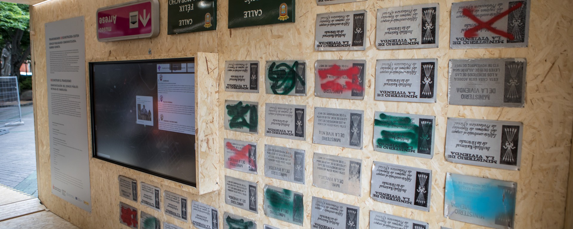 El Gobierno de Navarra, en colaboración con el Observatorio Europeo de Memorias (EUROM) y el proyecto Arte Público y Memoria de la Universidad de Barcelona, ha organizado una exposición que muestra los más de 300 símbolos y menciones honoríficas franquistas que han sido retiradas del espacio público gracias al programa de retirada de simbología franquista de la Dirección General de Paz, Convivencia y Derechos Humanos.