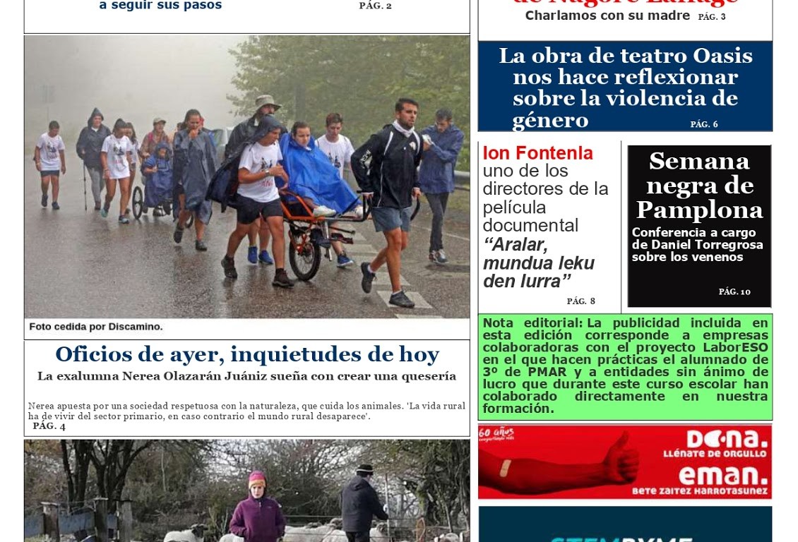 El alumnado de 3º PMAR (Plan de mejora del Aprendizaje y Rendimiento) del IES Tierra Estella por segundo curso consecutivo han sido seleccionados en el concurso de ámbito nacional de El País: el país de los estudiantes como finalistas de la Comunidad de Navarra con el periódico “La Rúa” optando así a los premios que El País otorga a los tres mejores periódicos escolares del Estado.
