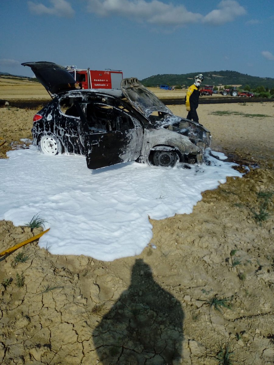 Arde un coche en Villatuerta y quema dos hectáreas de rastrojo