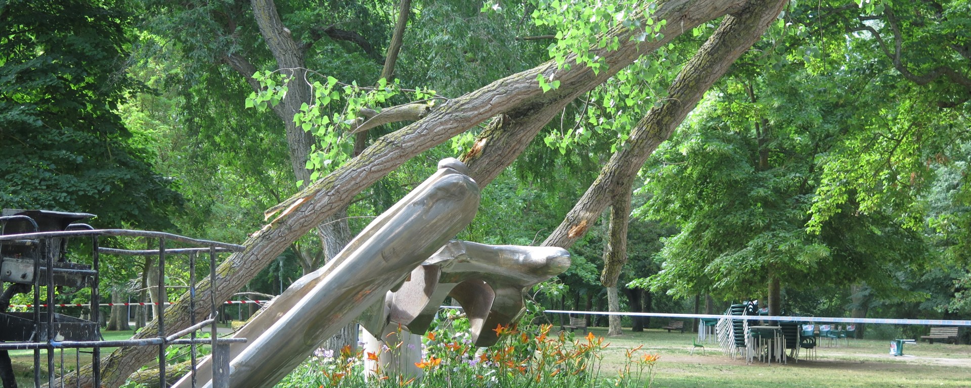 Trabajadores del Ayuntamiento de Estella-Lizarra se afanaban esta mañana en acondicionar el lugar donde, ayer a la tarde, una rama destrozó la escultura del artista cascantino Clemente Ochoa. El suceso ocurrió en un momento en el que la afluencia de paseantes no era como el de otros días, al haber bajado las temperaturas y por el hecho de que al celebrarse la Semana Medieval, el principal atractivo de la ciudad se encontraba en las calles y plazas y no en el Parque de Los Llanos. Esas dos circunstancias han contribuido a que no tengamos que lamentar desgracias personales.