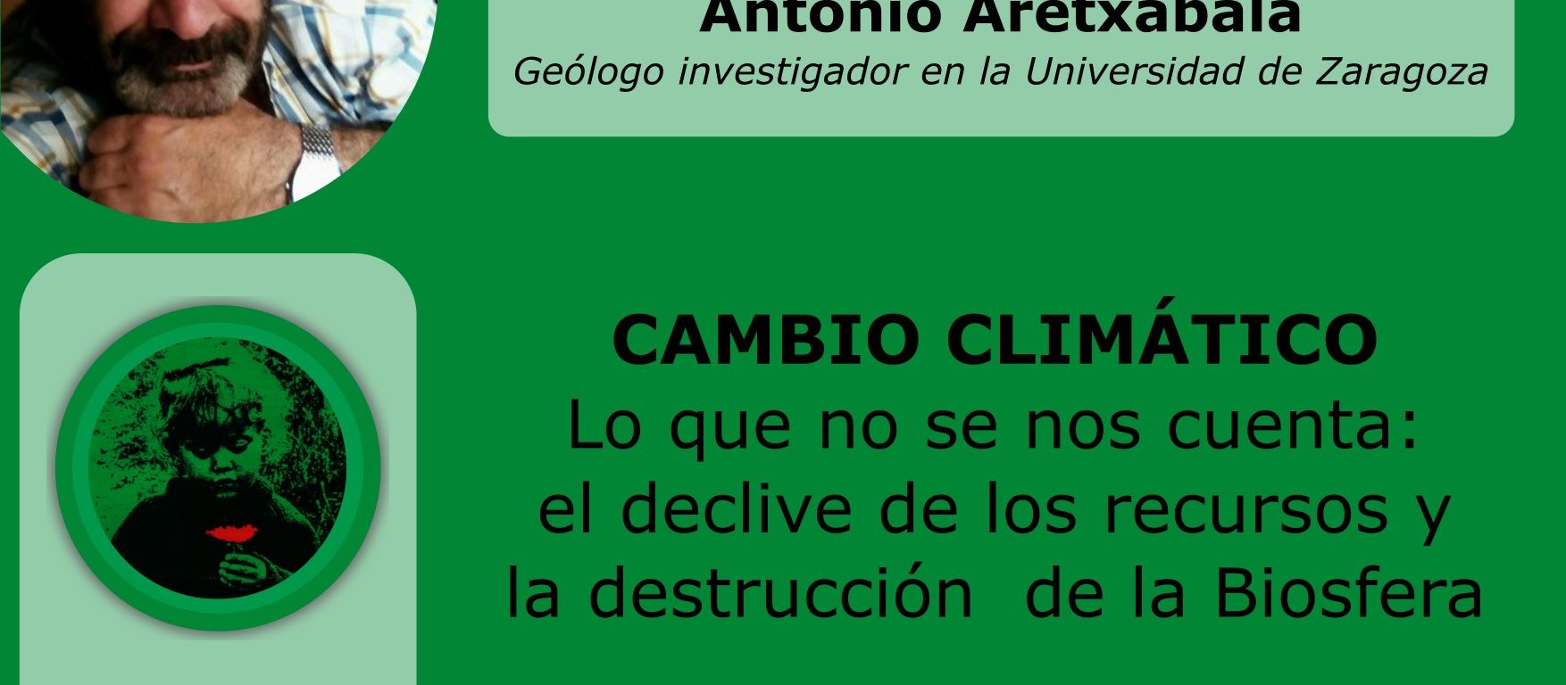 El geólogo e investigador de la Universidadde Zaragoza Antonio Aretxabala, ofrece hoy viernes en la Peña La Bota una charla sobre cambio climático, organizada por Ekologistak Martxan Lizarra-Estella, dentro del Noviembre Ecológico – Azaro Ekologiko.