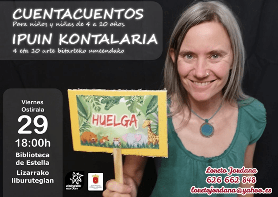Este viernes, 29 de noviembre, a las seis de la tarde en la Biblioteca Municipal de Lizarra, el XXI AZARO ECOLÓGICO, concluye su ciclo con una actividad dedicada a quienes les va a tocar convivir con las consecuencias del Cambio Climático, nuestras hijas y nietas, un CUENTACUENTOS a cargo de Loreto Jordana. Loreto nos adelanta qué les va a relatar a nuestras pequeñas y que sin duda resultará … Continúa leyendo Este viernes termina el Noviembre Ecológico