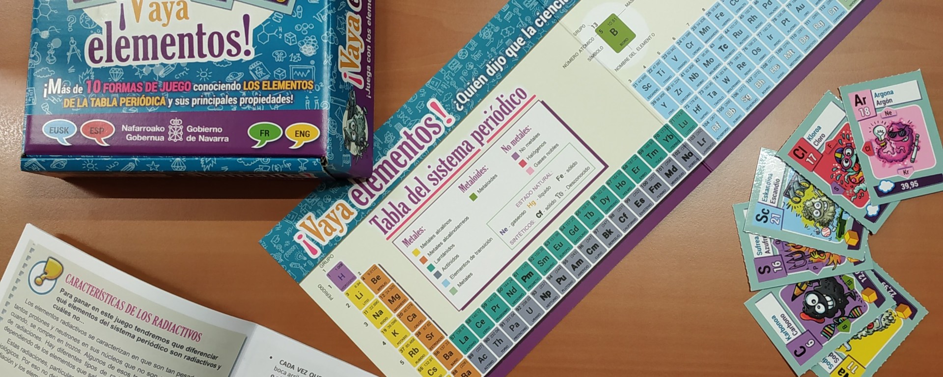 El Departamento de Desarrollo Económico y Empresarial del Gobierno de Navarra ha creado el juego ¡Vaya Elementos¡ basado en la tabla periódica y que servirá de apoyo a la hora de estudiar la materia. El juego se podrá adquirir en la feria del disco y libro de Durango que tendrá lugar desde el jueves 5 hasta el domingo 8 de diciembre, así como en la tienda de publicaciones del Gobierno foral.