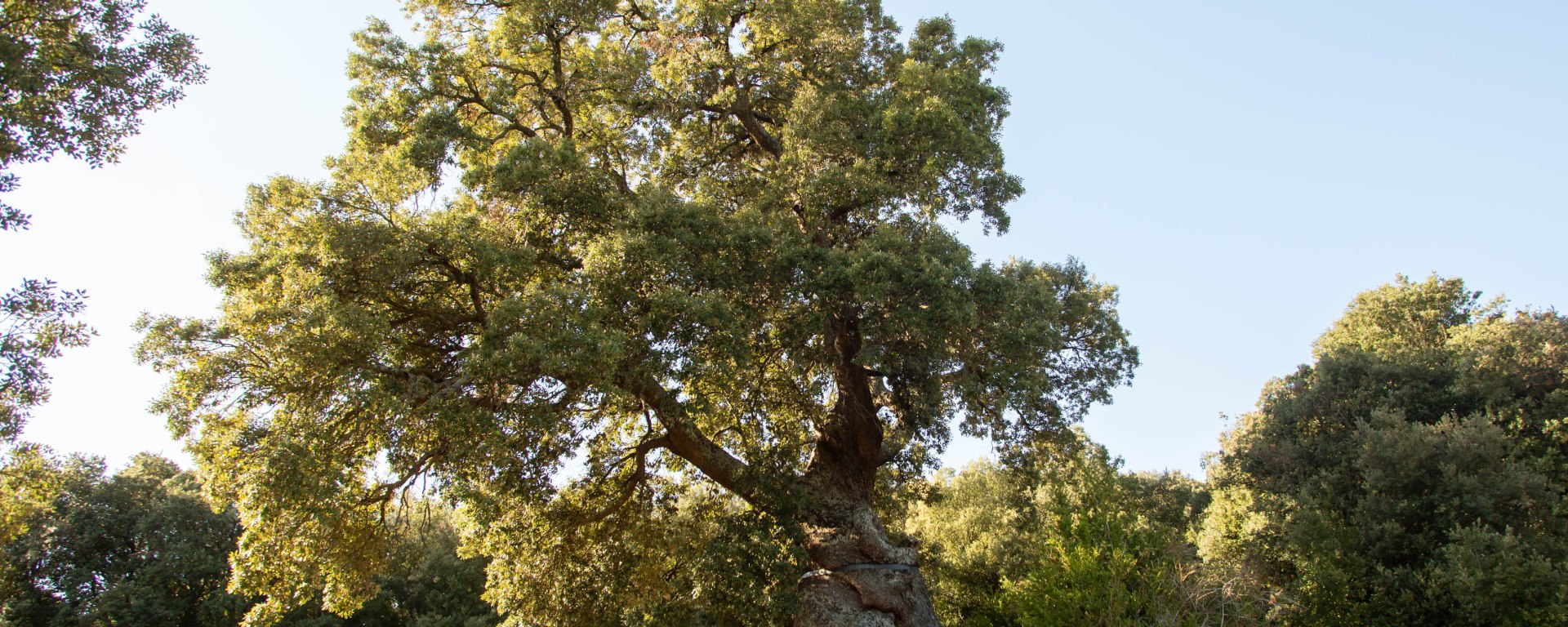 Se trata de una encina de unos datada en cerca de mil años, una de las más antiguas que existen en territorio español, que suele recibir multitud de visitas todos los fines de semana para apreciar su porte monumental: 15,7 metros de altura, unos 20 de envergadura en la copa y un tronco de 7,7 metros de diámetro hueco en su interior y apoyado en tres patas, un ejemplar único en Europa.