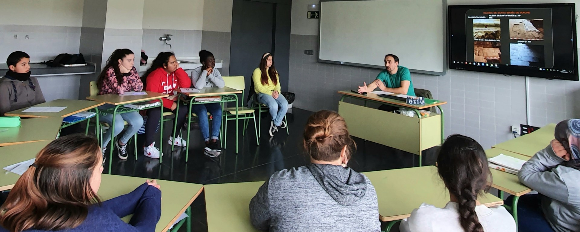 El arqueólogo encargado de los trabajos del Monasterio de Irache, José Antonio Faro Carballa visitó el día 12 de febrero las aulas de 3ºPMAR, en el IES Tierra Estella, para explicar al alumnado las tareas y los hallazgos que se han realizado en la iglesia de Santa María del Monasterio de Irache en Ayegui.