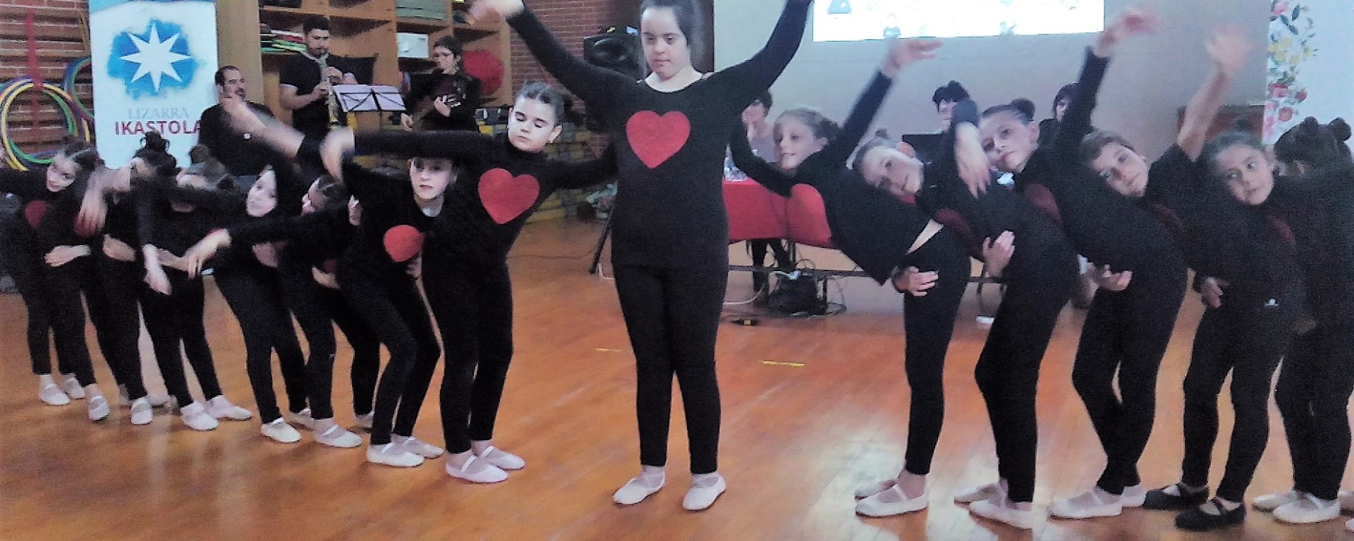 El acto de presentación estuvo precedido por un montaje escénico que se inició con unos versos de Mikel Pinillos, de la Bertso-Eskola de Lizarra, que dio entrada a una actuación inclusiva de música y danza a cargo de alumnas de la Escuela de Danza Andrés Beraza.