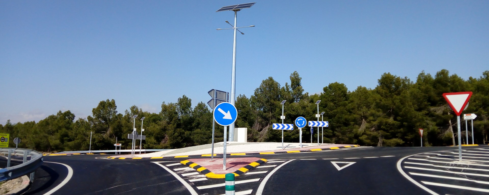 Las obras para convertir en una rotonda la intersección entre las carreteras, NA-624, Peralta-Andosilla y la NA-653, Altos de Peralta-San Adrián, han concluido esta semana con la instalación de las luminarias y báculos solares para su alimentación.