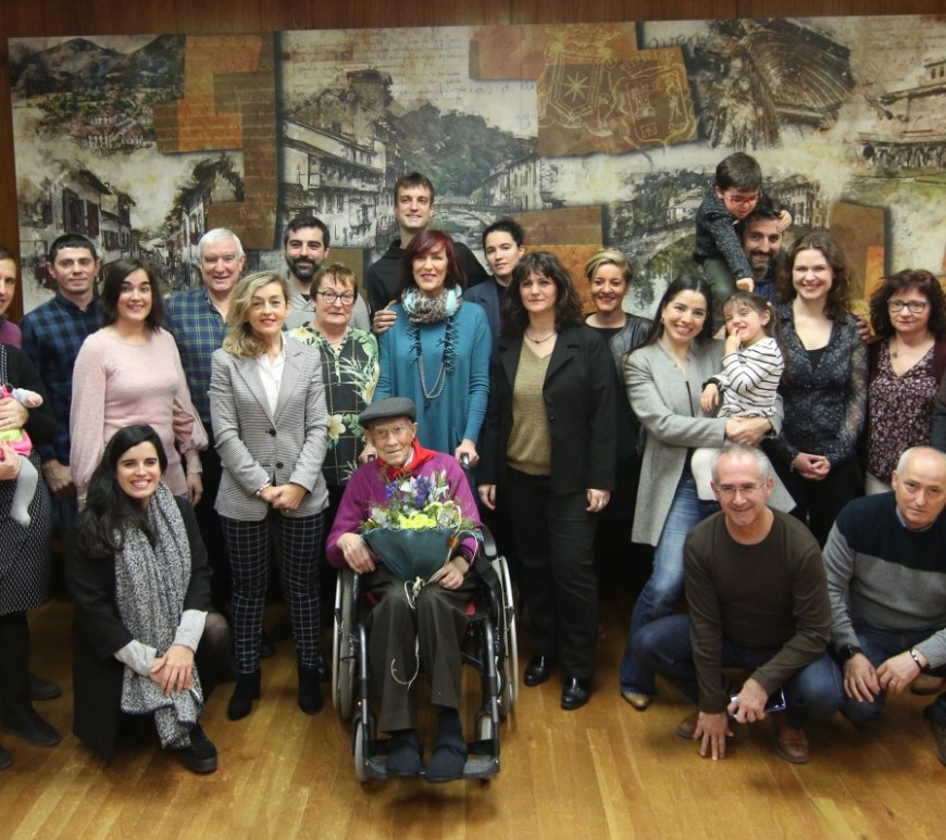 Ha sido recibido en la casa consistorial arropado por más de una veintena de familiares El Ayuntamiento de Estella-Lizarra ha rendido este mediodía un sencillo pero emotivo homenaje a Tomás García Martínez en el día de su cien cumpleaños. El acto ha tenido lugar en el Salón de Plenos de la casa consistorial, donde ha acudido junto a más de una veintena de … Continúa leyendo El Ayuntamiento de Estella rinde homenaje al centenario Tomás García Martínez
