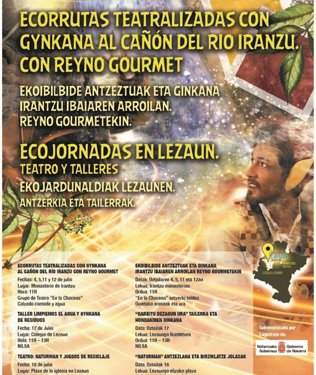 LA MAGIA DEL AGUA es un proyecto sostenible, en el que el teatro, la historia, la mitología, los juegos, gynkanas y talleres van a ser grandes protagonistas. Este proyecto organizado por la Asociación Tierras de Iranzu con la colaboración de los Ayuntamientos de Abárzuza, Lezaun, Nilsa y Reyno Gourmet. Este proyecto pretende concienciar a todos los participantes de la necesidad de cuidar nuestro planeta.