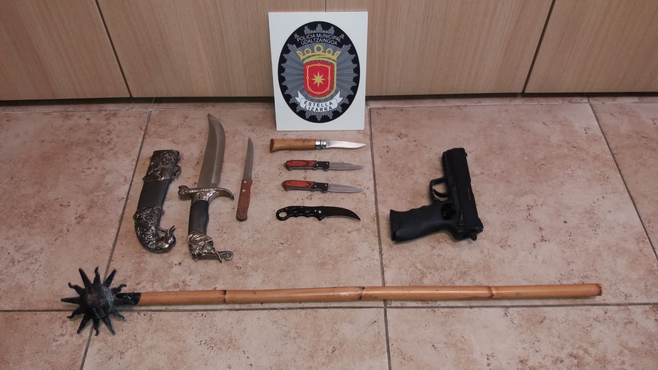 Además de recuperar los efectos hurtados, los agentes se incautaron de varias armas, algunas de las cuales figuran como armas prohibidas.