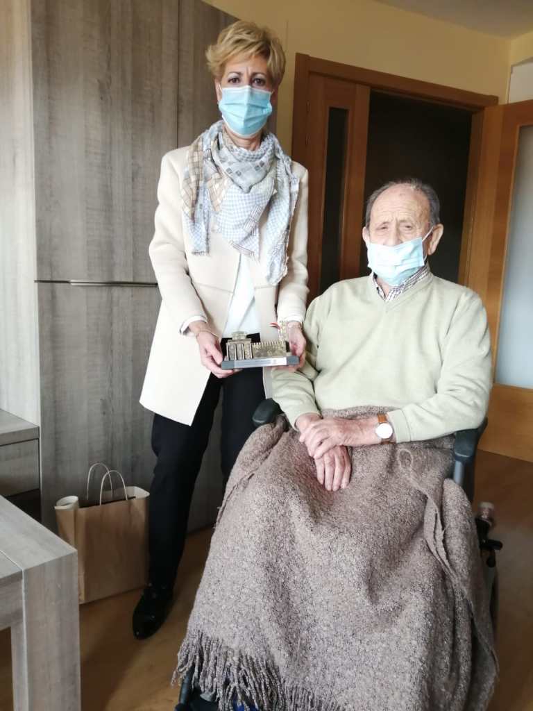 La alcaldesa M.B. Yolanda González, en nombre del Ayuntamiento ha querido felicitar de forma personal a Claudio, haciéndole una visita a su domicilio y llevándole un obsequio, como muestra la fotografía.