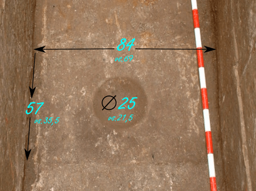 La más importante función de dicha Asesoría, sin desdeñar otras como la preparación de proyectos para intervenir en el Patrimonio Histórico de la ciudad a instancias del Ayuntamiento, era informar sobre todas las obras que se proyectaba realizar en el ámbito del P.E.P.R.I de Estella-Lizarra en cumplimiento de su normativa sobre arqueología. Así se ejercía una protección preventiva del Patrimonio Histórico de la ciudad. La intervención efectuada en el solar nº 25 de la C/. San Nicolás permitió recuperar un lagar hecho en su totalidad mediante losas de piedra. Fechamos su construcción, como muy pronto, a finales del s. XIX para ser abandonado en el s. XX, hacia la segunda mitad del siglo. En el centro del suelo del lagar efectivamente se encontraba una losa con unas dimensiones – tal como describen fichas de registro, croquis de campo y planos levantados durante la excavación – de 57 cm. de anchura y de 84 cm. de longitud; esta losa contaba con una concavidad circular central, un pocillo, de 25 cm. de diámetro destinada probablemente a facilitar la limpieza del lagar una vez vaciado 2.