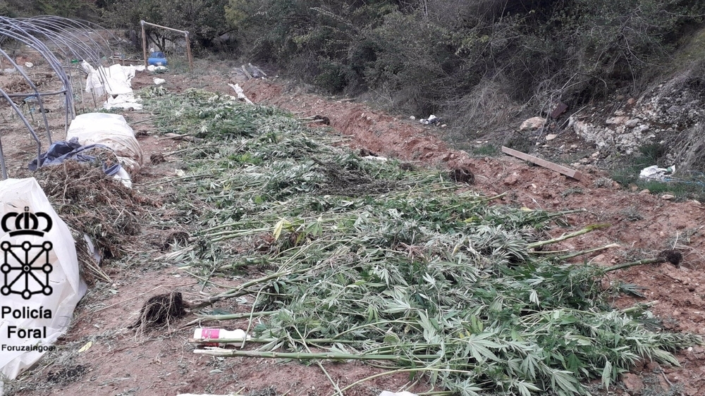 En Estella ha sido detenido un varón y se investiga a otro por cultivo y elaboración de droga en una localidad del valle de Allín, con 35 plantas de marihuana escondidas y otras 100 ya cortadas para su secado previo a la venta.