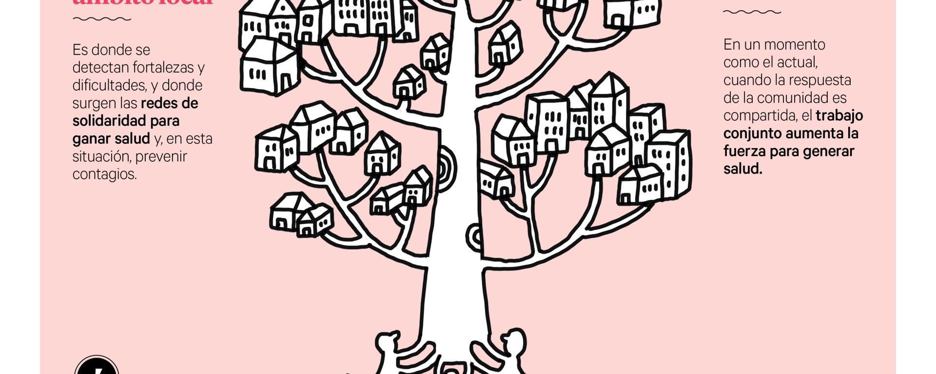 En una situación difícil como la actual, muchas personas están aumentando su cuidado y apoyándose mutuamente. También en los barrios y pueblos se están dando múltiples acciones de cooperación. Las iniciativas locales están movilizando a distintos agentes sociales, como los mencionados ayuntamientos, asociaciones, centro de salud, servicios sociales, etc. y han surgido propuestas de jóvenes, de grupos de mayores o de mujeres, de iniciativas de ediles o de colaboración entre el centro de salud con el servicio social municipal.