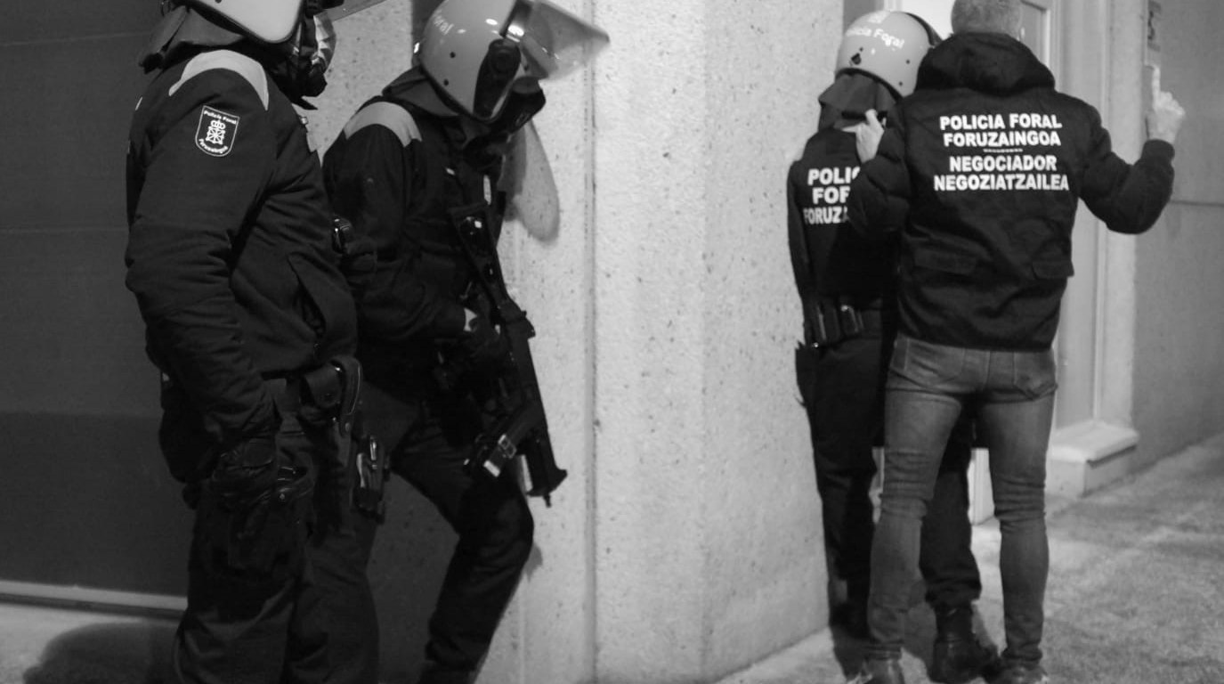 Gracias a sus técnicas persuasivas logró que desmunicionara el arma antes de dejarla en el suelo y alejarse de ella. En ese momento una PRI (patrulla de respuesta inmediata) accedió a la oficina y sin usar la fuerza controló a la persona, que accedió a las instrucciones policiales y confesó a los agentes su intención por acuciantes problemas personales y económicos. Finalmente fue trasladado al Complejo Hospalario de Navarra en ambulancia escoltada con el fin de que fuera valorado médicamente.