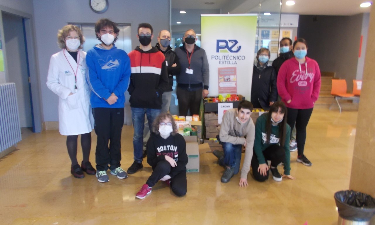 Los alumnos del CFPE junto con sus profesores y director del C.I Politécnico de Estella han entregado a los cooperantes de Cáritas, Soco y Raúl , los alimentos recogidos durante la campaña de solidaridad realizada entre el 14 y 17 de diciembre. En esta campaña se ha recogido azúcar, aceite y cacao.