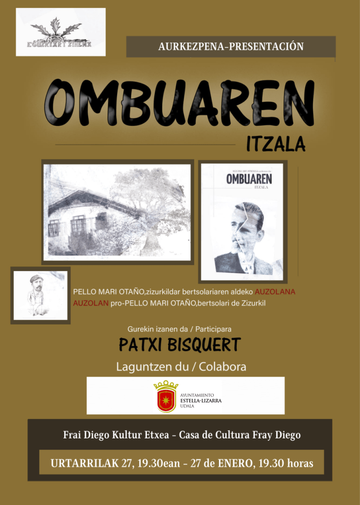 La Casa de Cultura Fray Diego de Estella-Lizarra acoge este miércoles, día 27 de enero, a las 19.30 horas, la presentación del proyecto cinematográfico ‘Ombuaren itzala’, de la productora Eguzki Art y que pretende llevar a la gran pantalla la vida y obra del bertsolari Pello Mari Otaño (Zizurkil 1857-Argentina 1910).