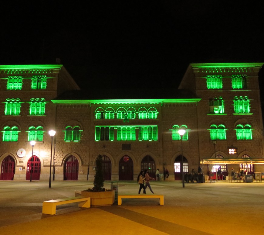 Estella-Lizarra ilumina de verde el edificio de la estación y la entrada principal al ayuntamiento coincidiendo con el Día Mundial contra el Cáncer