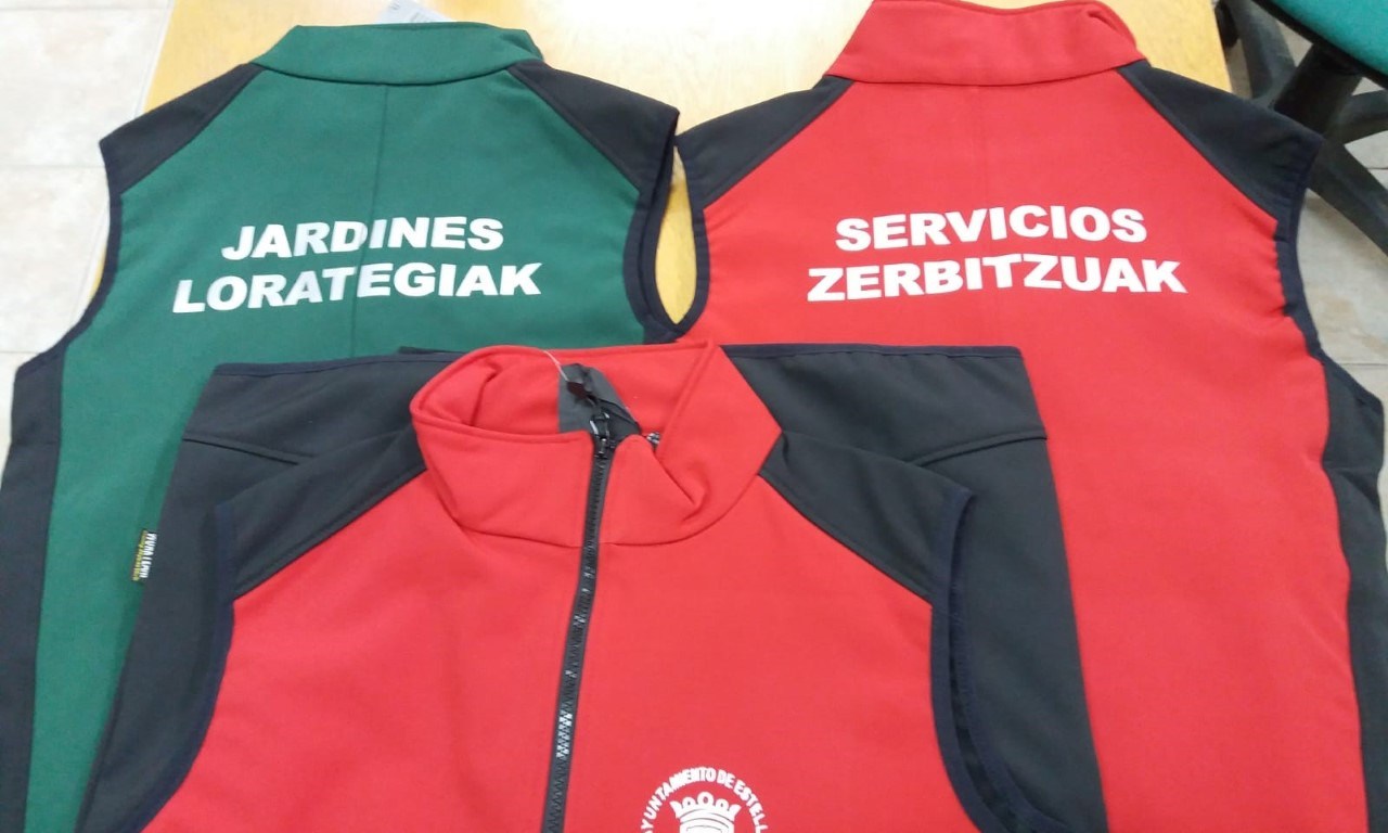 El Área de Servicios del Ayuntamiento de Estella-Lizarra acaba de renovar los uniformes completos de su plantilla diferenciando por colores a las distintas brigadas. El personal de la Brigada de Servicios Múltiples, compuesto por seis miembros, viste ahora de rojo, mientras que la Brigada de Jardines (3 personas) ha pasado a vestir de color verde.