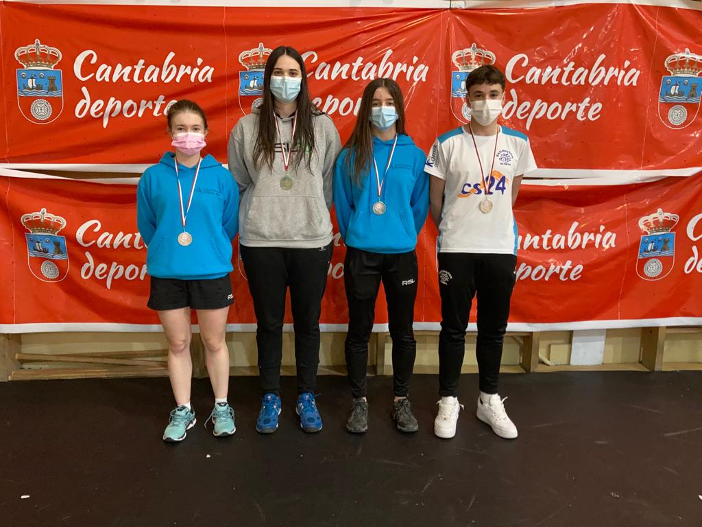 La jornada del domingo también nos trajo varios metales. Hasta Soto de la Marina se desplazaron Mikel Eraso, Carlos Sanz de Acedo, Nerea Eraso, Nelly Iriberri y Amaia Torralba. En categoría sub-17, Nerea Eraso junto a su compañero Javier Barrios (Soria CS24) se colgaba la plata en doble mixto, en doble femenino y formando pareja con Adriana Aguazo (Olimpia Torrelavega) consiguieron el bronce. Ya en categoría absoluta, Nelly Iriberri/Amaia Torralba se colgaron la plata, tras perder en un gran partido ante las gallegas L. Rodríguez/A. Setién.La próxima competición para el CB Belmecher será el Máster jóvenes sub-13 y sub-17 en Tordesillas.